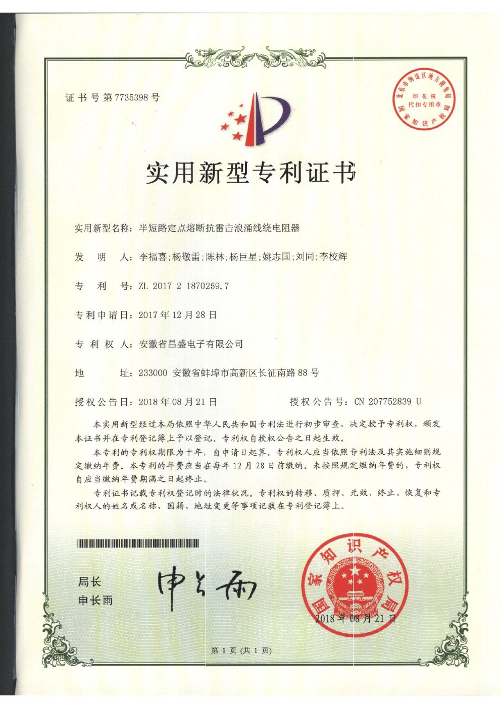 尊时凯龙人生就博集团 - 关于我们 - 专利证书